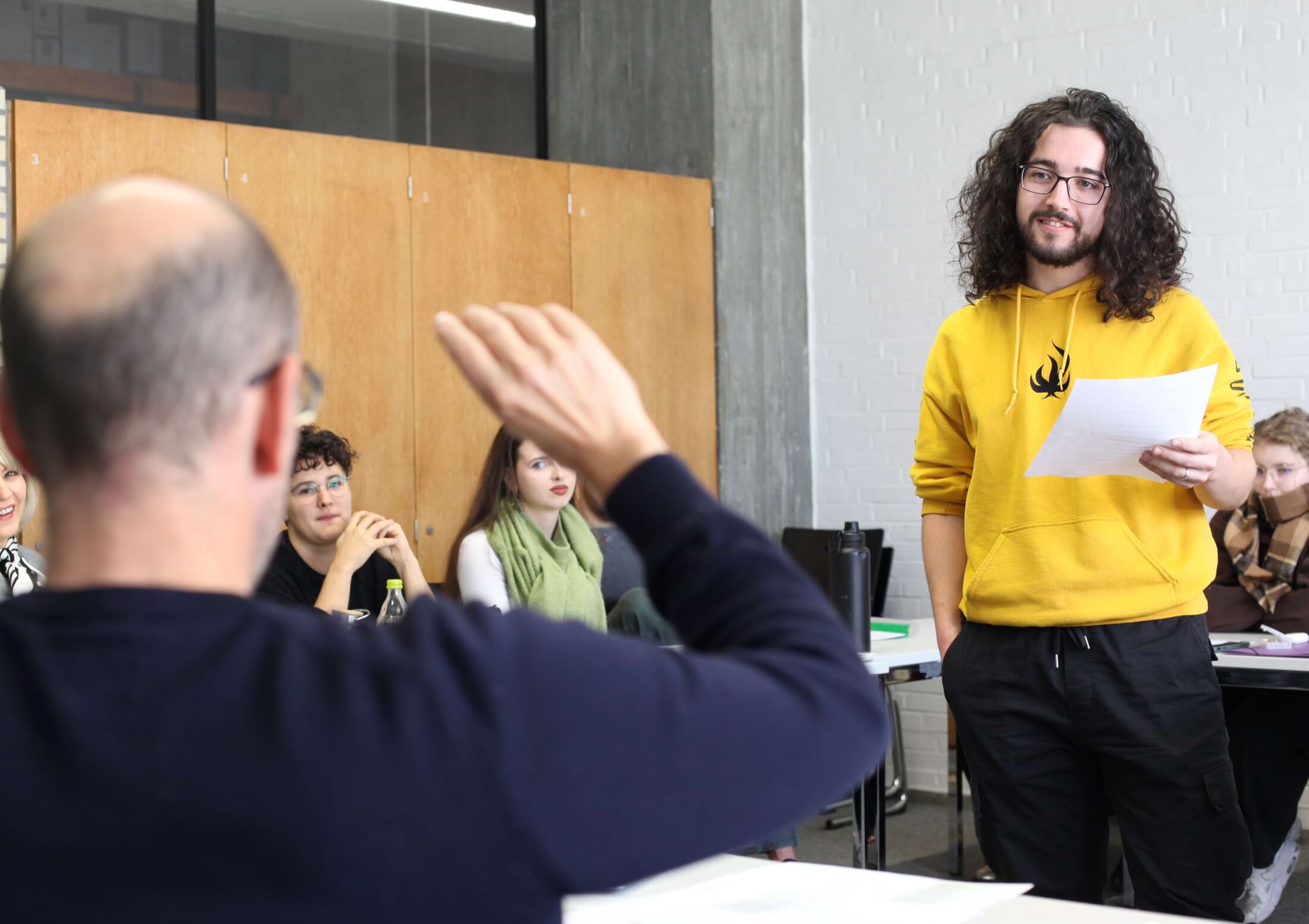 Der Akt des Sprechens ist ein Zusammenspiel zahlreicher Einzelbereiche wie Körperhaltung, Tonus, Atmung, Stimmgebung und Artikulation. Sie sind die handwerkliche Basis unseres stimmlich-sprecherischen Ausdrucks, die gelernt und trainiert werden kann. Gerne vermitteln wir Einzelunterricht bei den künstlerisch-pädagogisch ausgebildeten Sprecher*innen und Sprecherzieher*innen des Ensembles der Akademie für gesprochenes Wort, die jeweils unterschiedliche Arbeitsschwerpunkte entwickelt haben.