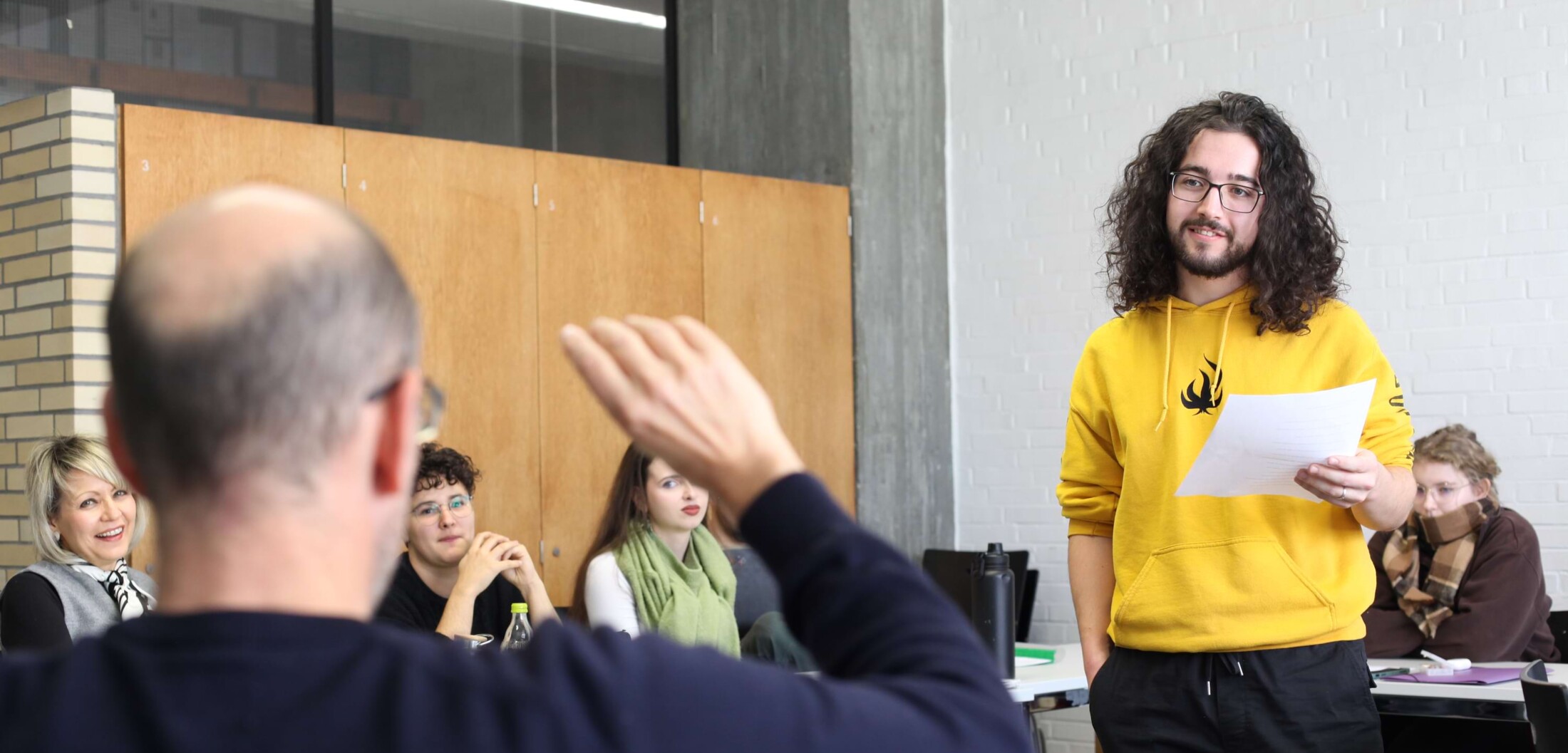 Der Akt des Sprechens ist ein Zusammenspiel zahlreicher Einzelbereiche wie Körperhaltung, Tonus, Atmung, Stimmgebung und Artikulation. Sie sind die handwerkliche Basis unseres stimmlich-sprecherischen Ausdrucks, die gelernt und trainiert werden kann. Gerne vermitteln wir Einzelunterricht bei den künstlerisch-pädagogisch ausgebildeten Sprecher*innen und Sprecherzieher*innen des Ensembles der Akademie für gesprochenes Wort, die jeweils unterschiedliche Arbeitsschwerpunkte entwickelt haben.